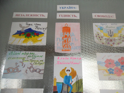 - Виставка творчих робіт учнів на тему: «Україна: незалежність, гідність, свобода».
